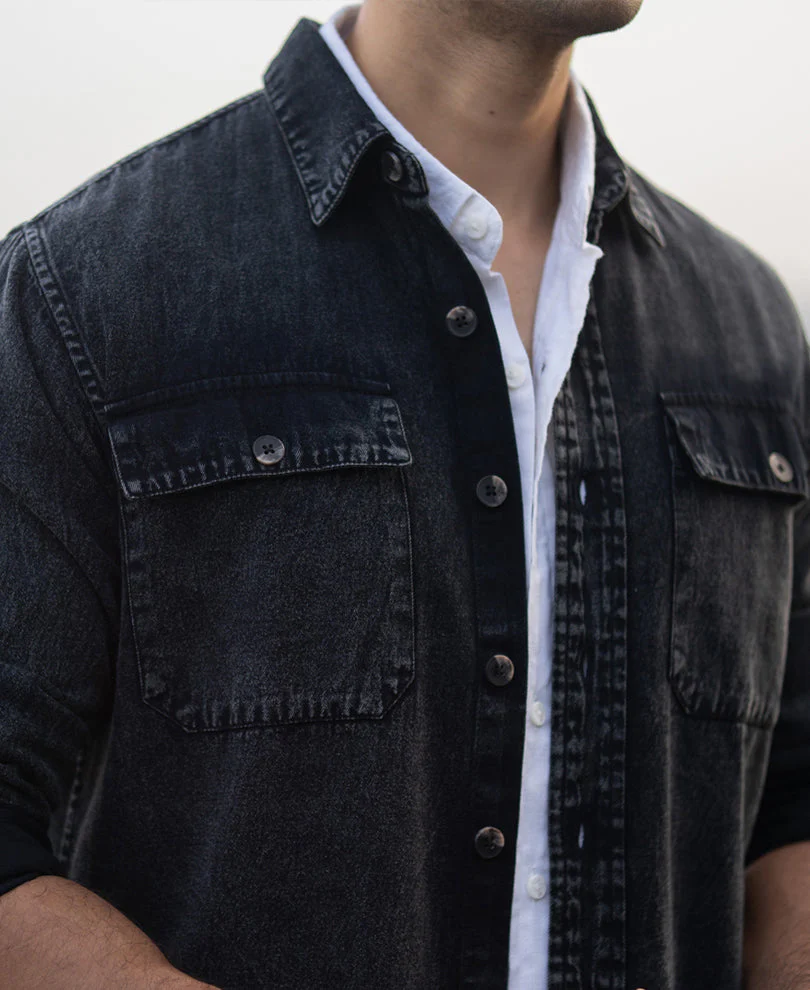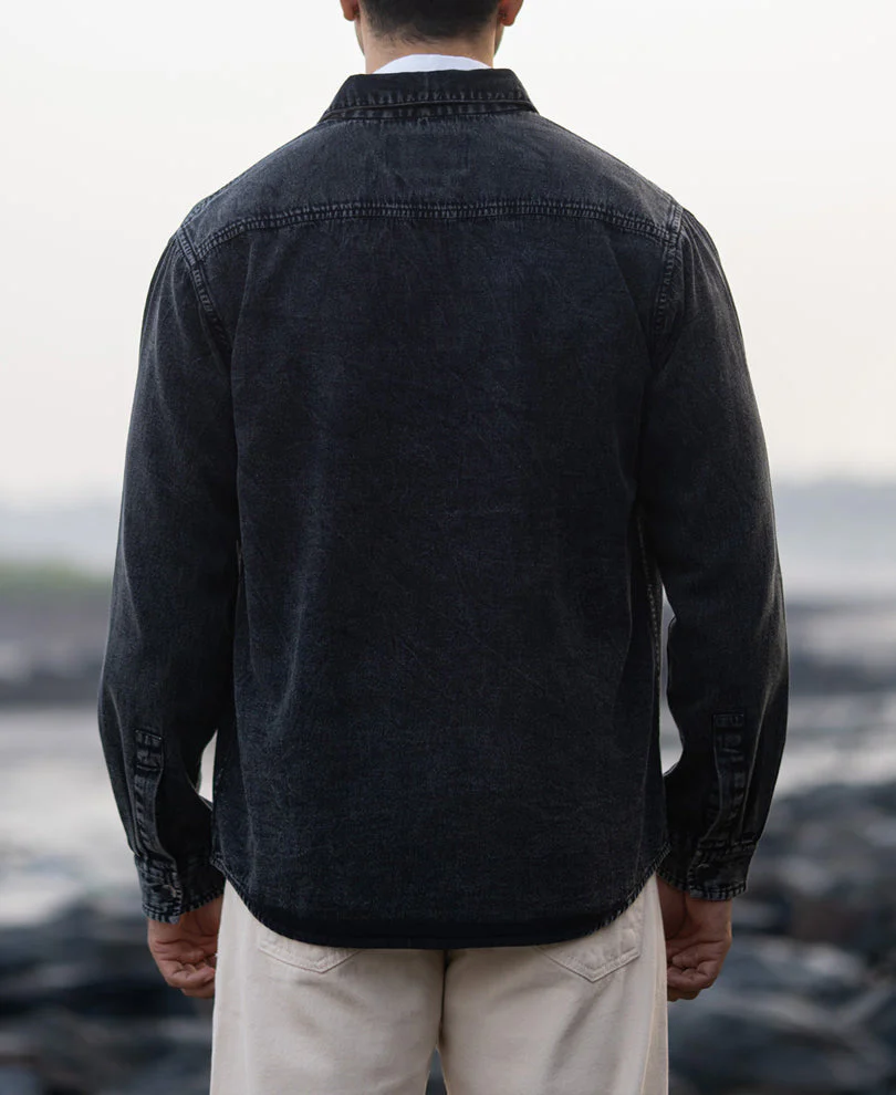 Black Charcoal Washed Denim Shirt