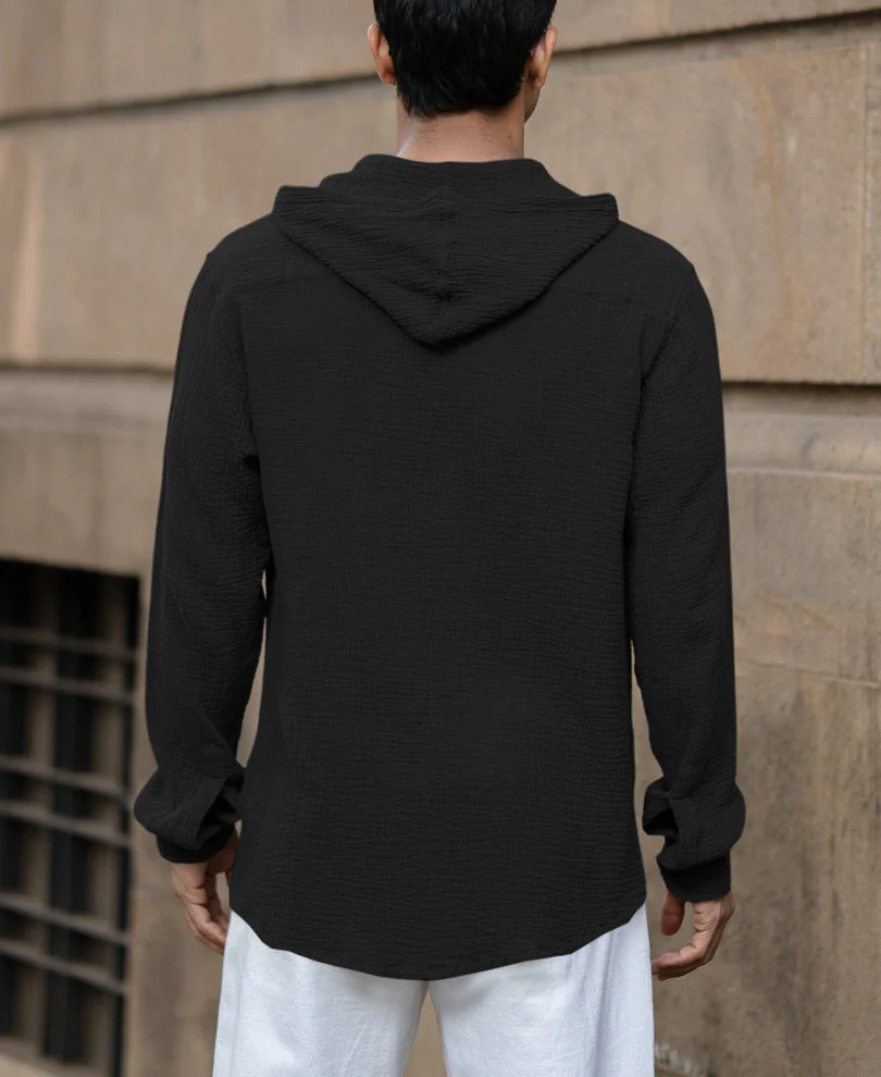 Black Crinkled Hooded Shirt