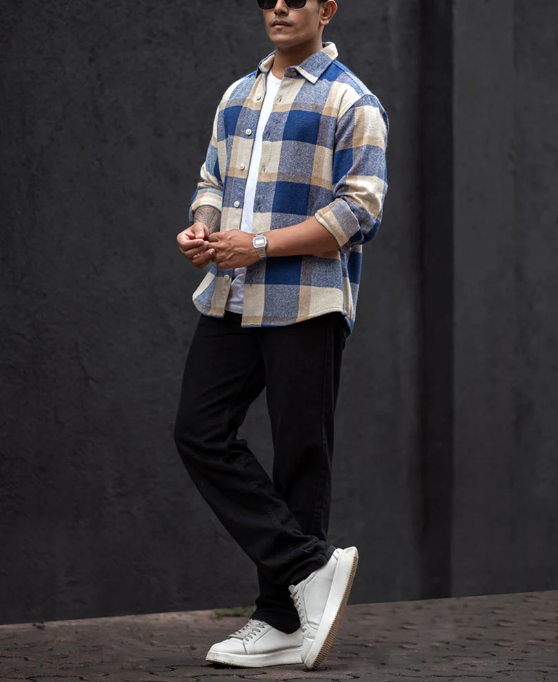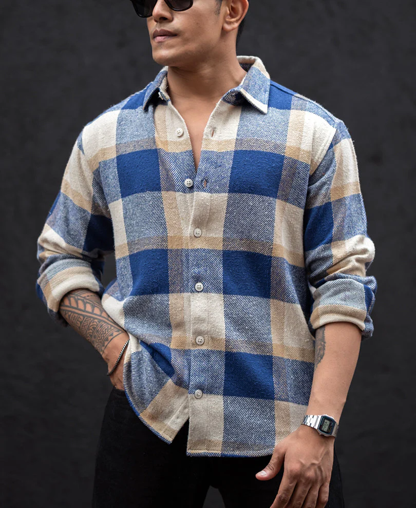 Blue And Off White Checked Regular Fit Full Sleeves Shirt