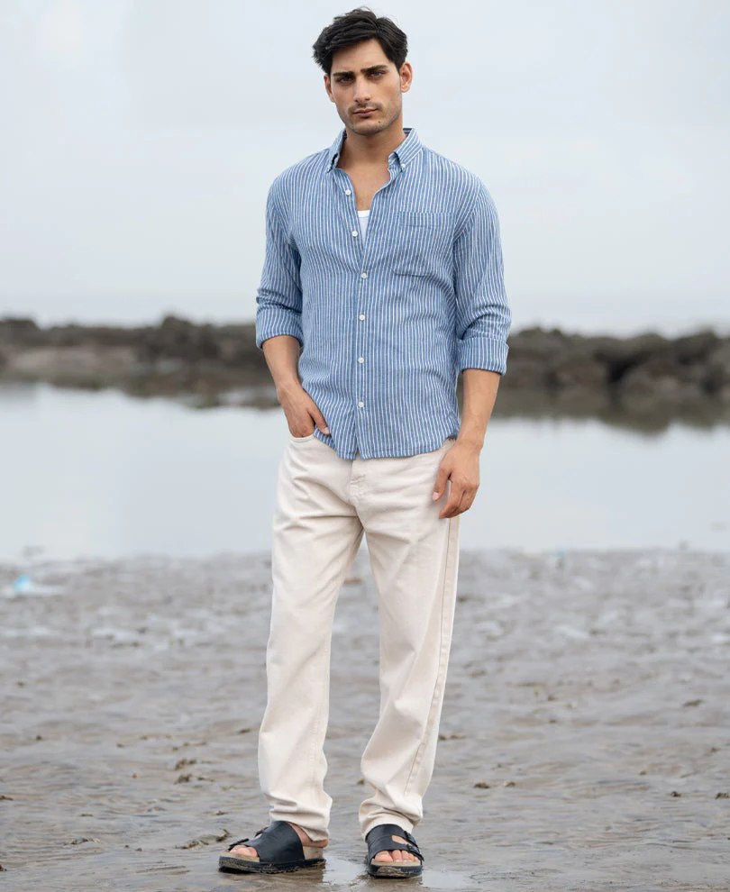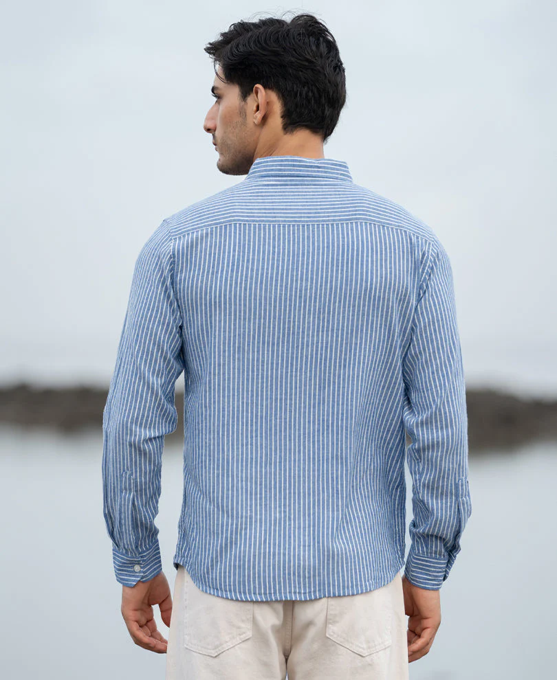 Blue Linen Blend Stripe Shirt