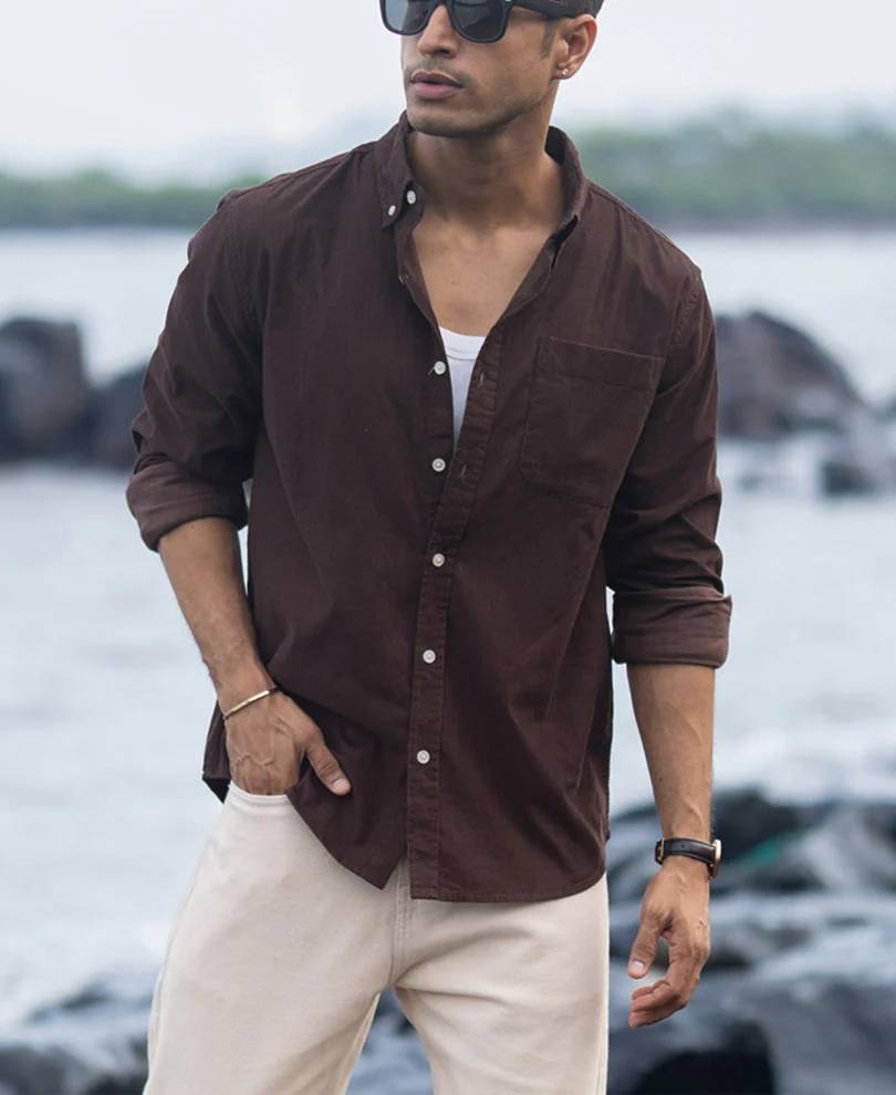 Coffee Corduroy Button Down Shirt