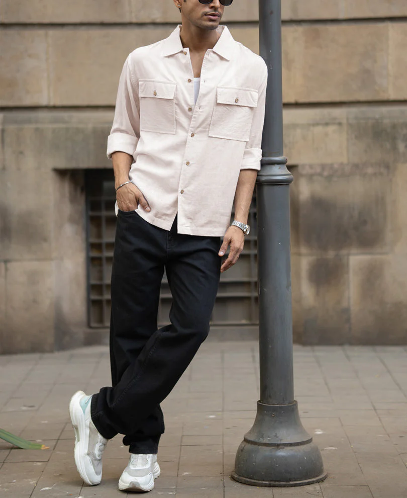 Be the first to review “Cream Linen Double Pocket Shirt”