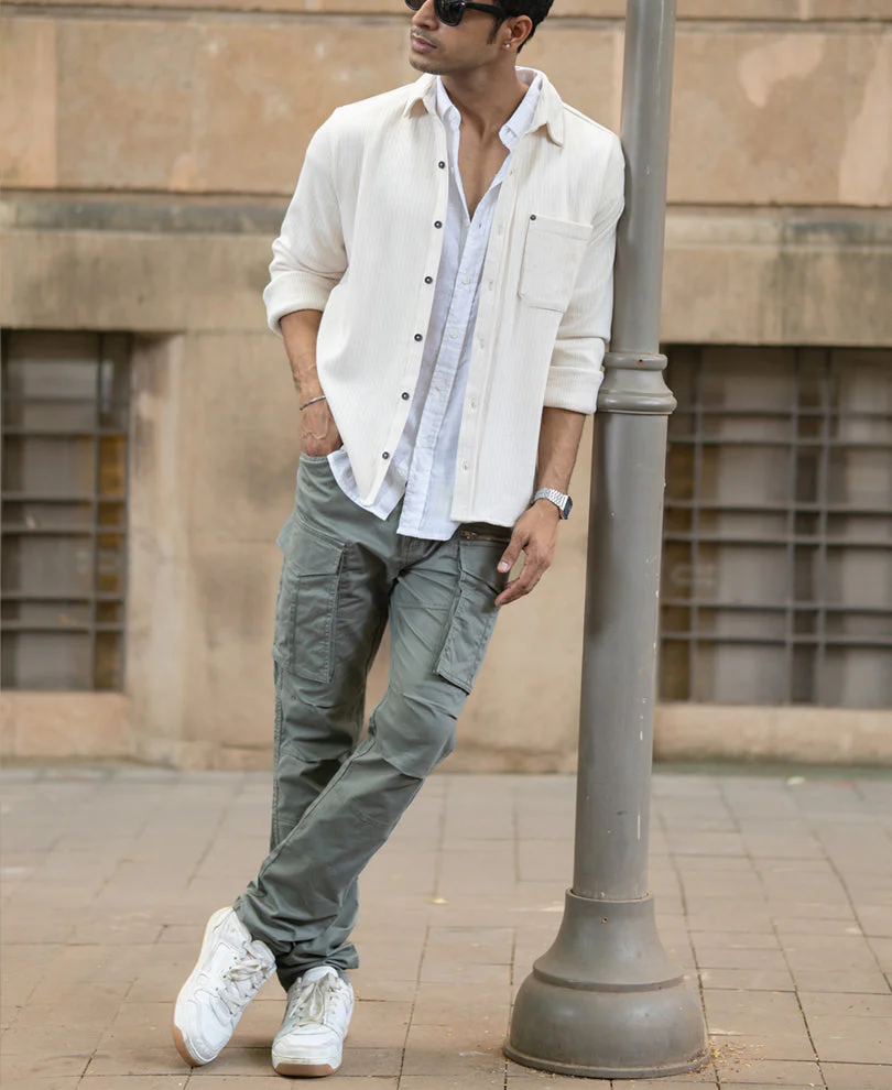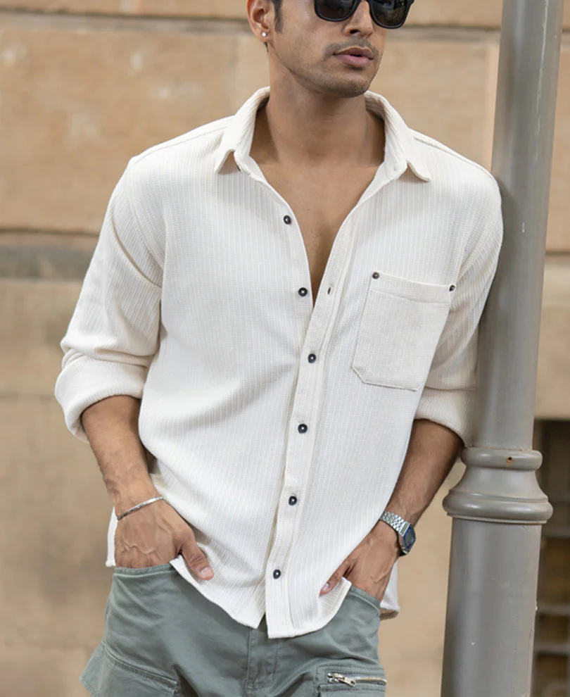 Cream Structured Shirt With Pocket