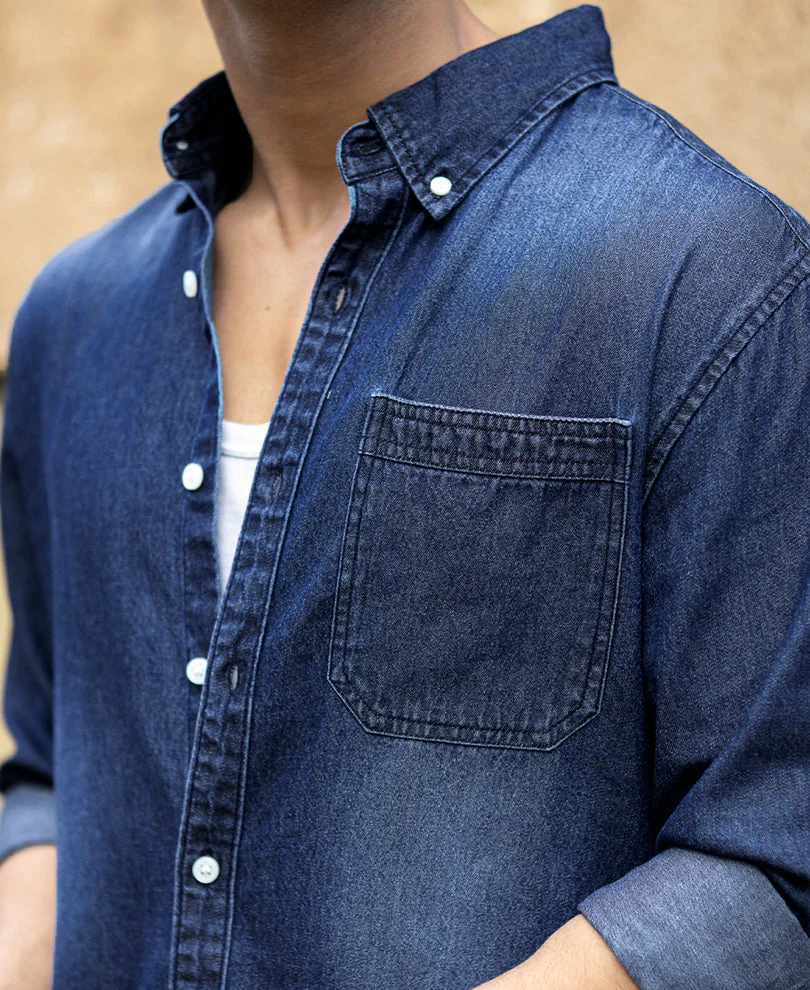 Dark Blue Washed Denim Shirt