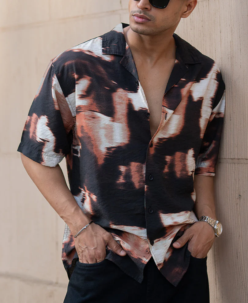 Be the first to review “Dark Brown Cuban Printed Oversized Shirt”