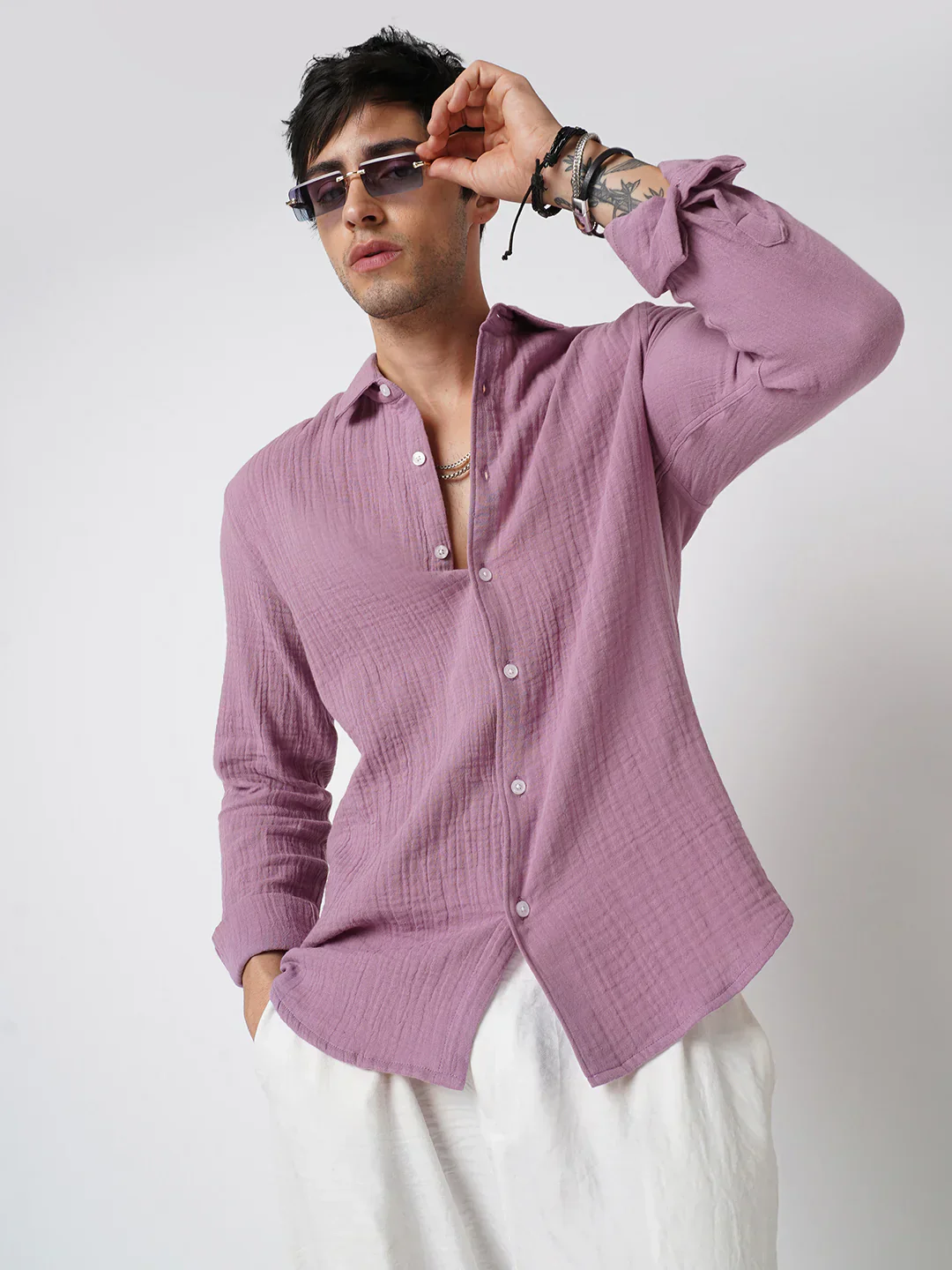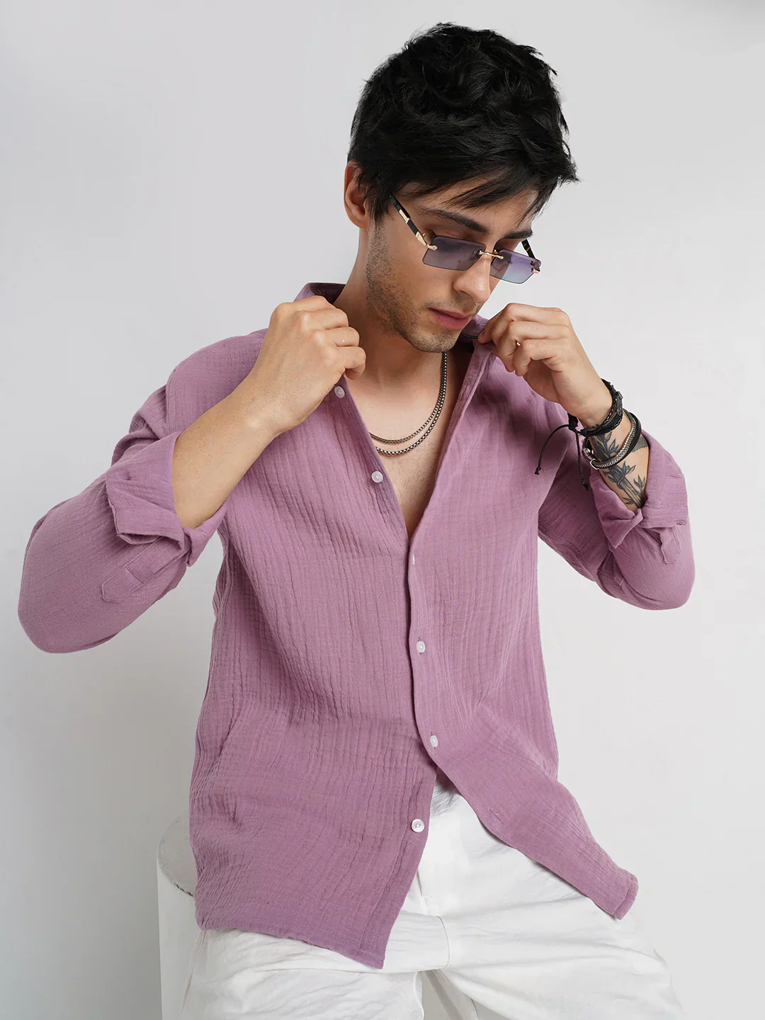 Add a touch of effortless style to your wardrobe with this dusty pink textured casual shirt, designed for a modern and relaxed look. The subtle texture adds depth to the fabric, giving it a premium and unique feel that stands out without being too loud.