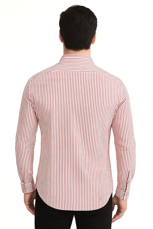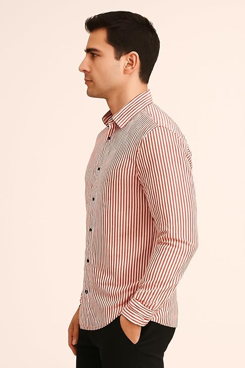 The classic striped pattern adds a timeless appeal, while the slim fit cut enhances your silhouette for a sharp and polished look. Featuring full sleeves and a functional single chest pocket, this shirt combines style with practicality.