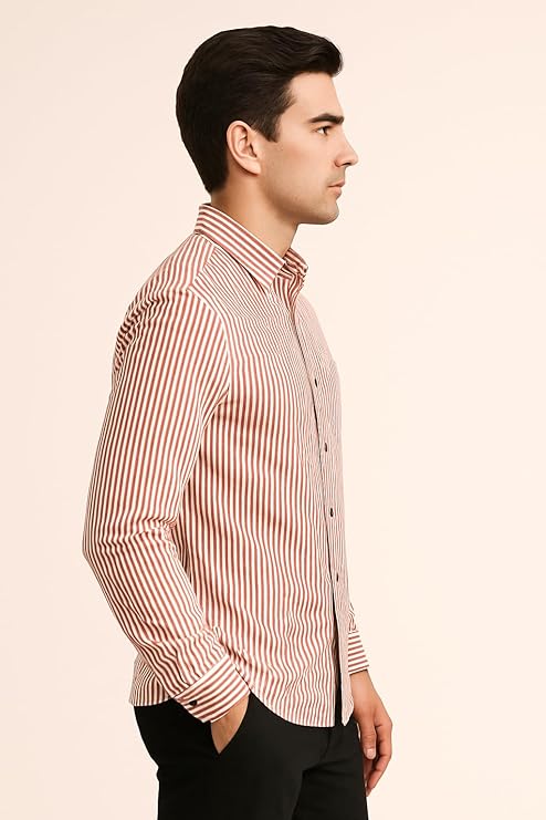 Upgrade your wardrobe with this Men’s Slim Fit Cotton Striped Shirt, designed to deliver the perfect balance of comfort, versatility, and modern style. Crafted from premium cotton fabric, this shirt offers excellent breathability and a soft feel, making it ideal for all-day wear.