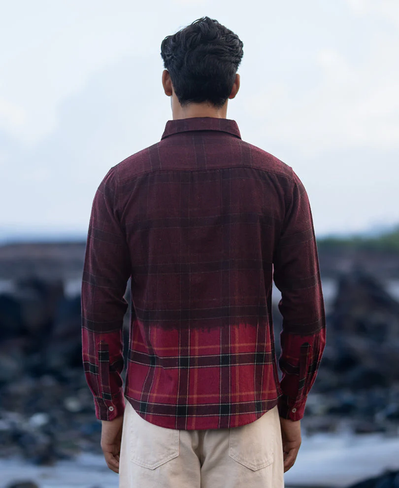 A deep wine hue meets a subtle ombre fade, giving classic checks a refreshing twist. Crafted from soft cotton, this shirt balances rugged charm with effortless refinement. Pair it over a tee or button it up; either way, it brings a relaxed sophistication that works from brunch to bonfire.